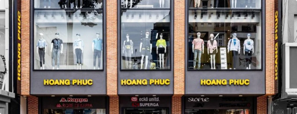 Trong suốt hơn 30 năm phục vụ khách hàng, Hoàng Phúc được biết đến là nhà cung cấp độc quyền tại Việt Nam của hàng loạt thương hiệu quốc tế nổi tiếng. HOANG PHUC International  ngôi nhà chung của những thương hiệu đình đám: Kappa, Ecko Unltd, Superga, Staple, Ninu&Nick được bán tại hệ thống gần 50 cửa hàng rộng khắp toàn quốc.